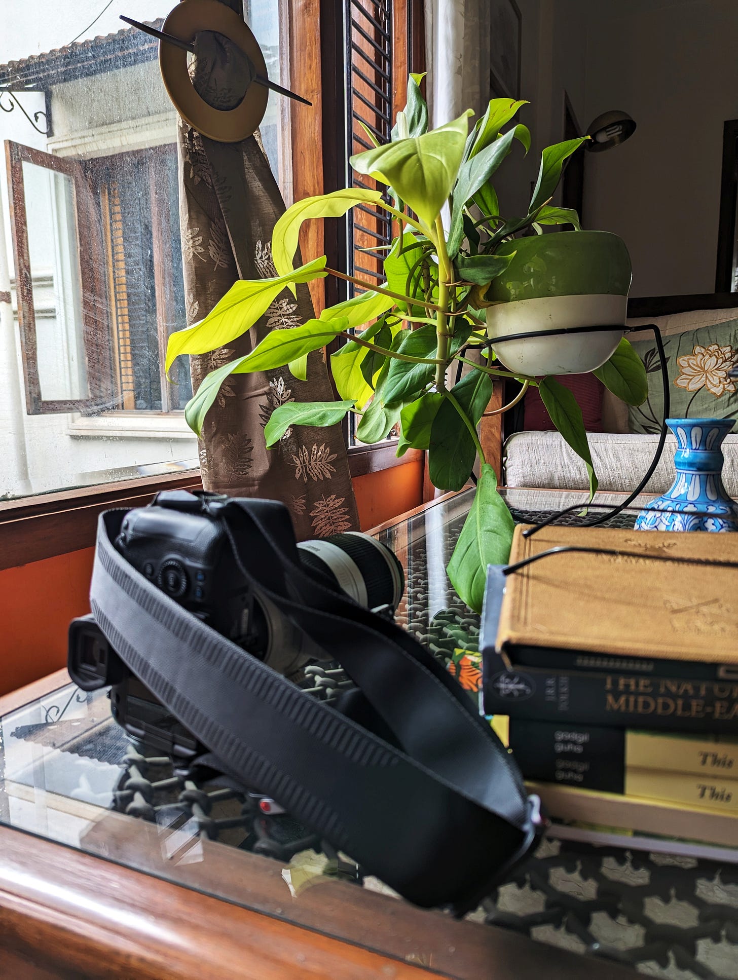 I’ve spent many years photographing animals and I care deeply about our wilds. I learnt very early, even before I got into photography, not to project human behavioural traits and patterns on animals. I don’t succeed entirely, for how can I when I look in their eyes? So I let loose my vestigial anthropomorphising desires occasionally on the machines. Thankfully they have no eyes that gaze soulfully at you. The day I start thinking that they do I should be committed to an asylum. For many years now, the primary object of my inanimated affection is my camera which is also the object of focus (it’s a bit out of but let’s assume that) in the photo above. Well, the lens specifically and hence the camera by association. Here comes yet another telling incident. I was walking along the streets of Oslo early in the morning some years back taking potshots with another lens. I had forgotten to zip up my camera sling bag and out popped this star of above photo on to the pavement. And there it lay as I continued my dalliance with the other. A passerby pointed to my fallen comrade. I thanked him and told him that I was aware of my lens’s detachment but there was nothing I could do now but let it rest a bit. Oslo is a very clean city, I must say. When I was done with my brief flirting with the other lens, I picked up the fallen one and gave it a wipe. Lenses have eyes you know but but no, this one didn’t look at me like I was a miserable wretch. It was a new lens back then and the impact with earth marked it but the champ shrugged off the dent. Ah! a lens with a philosopher’s bent, a kindred thingummy. We’ve had a wild time together, my 100-400 companion and I, from the Arctic to Rajastan’s deserts, from the Himalayas to the steaming, streaming tropical forests of Sri Lanka. Although I lay my hands occasionally on others, I’ve held fast to its steadiness and dependability.